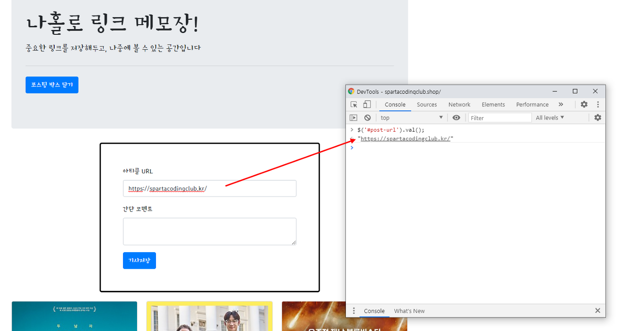 // id 값이 post-url인 곳을 가리키고, val()로 값을 가져온다.