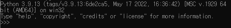 cmd 혹은 PowerShell 창에 python3을 입력해보고