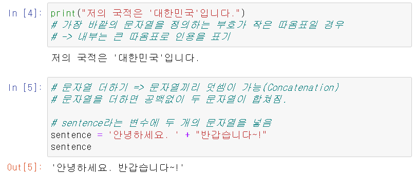 - 어떤 따옴표를 쓰는지 상관없지만 짝이 맞아야함!