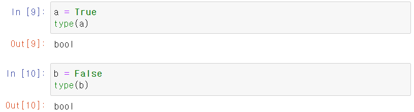 - 참(True), 거짓(False)를 나타내는 불(bool) 자료형이 있다.