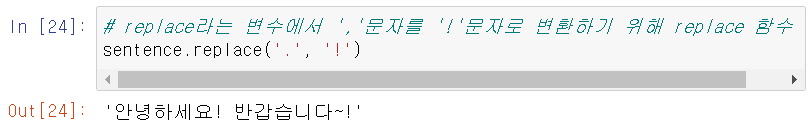 - replace(): 문자열에서 특정 문자를 변환할 때 사용하는 함수