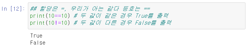 - 우리가 아는 '같다' 등호는 '=='