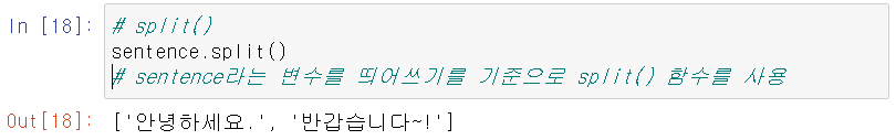 - split(): 문자열의 공백을 기준으로 문자열을 나누어주는 함수