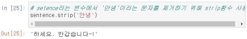 - strip(): 문자열에서 특정 문자 또는 문자열을 제거할 때 사용하는 함수