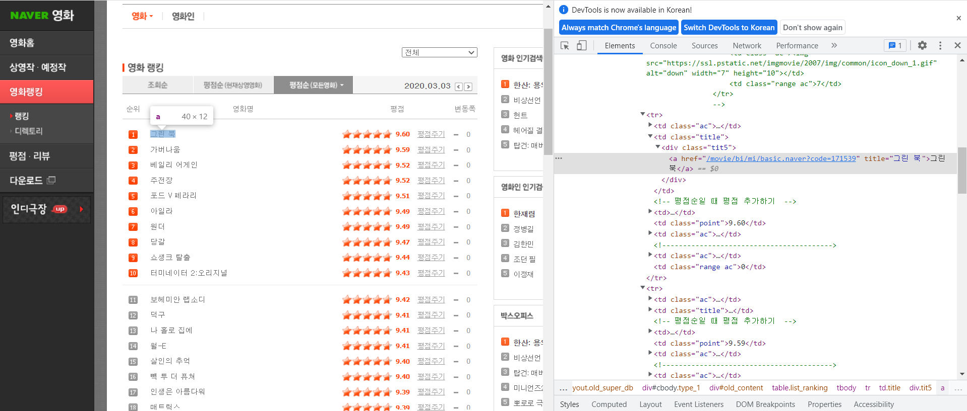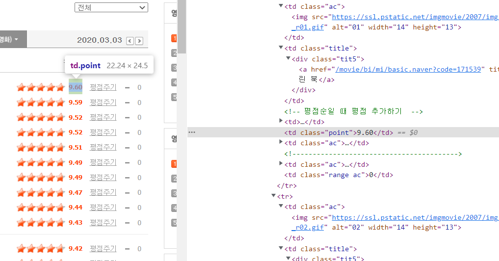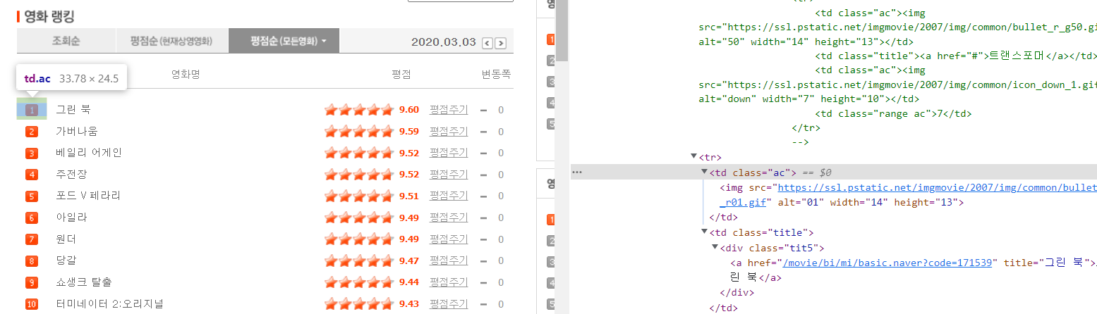 링크: https://movie.naver.com/movie/sdb/rank/rmovie.nhn?sel=pnt&date=20200303