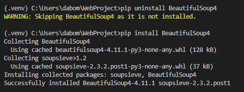 2. HTML 구조를 파악하는 데 도움을 주는 beautifulsoup4 패키지를 설치한다.