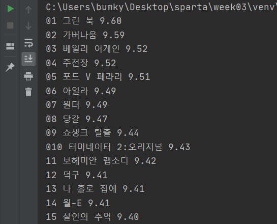웹 스크래핑(순위, 제목, 별점) 코드