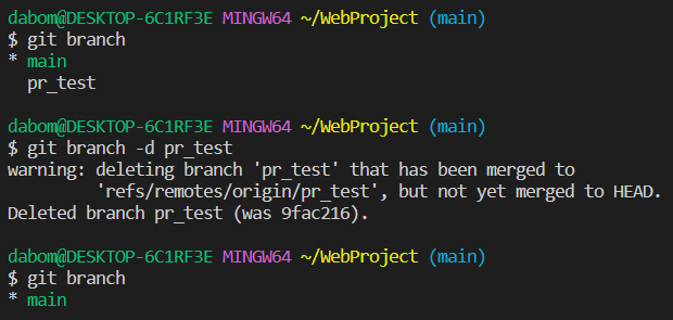 2) git branch pr_test (브랜치 생성)