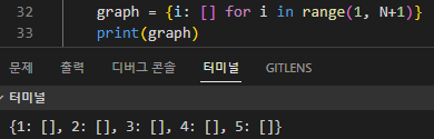아래 사진과 같이 예를 들어 N이 5이면 딕셔너리 안에 1부터 5까지의 key와 리스트가 초기화 된다.