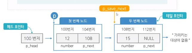 p_save_next = p -> p_next; // 다음 노드의 주소를 미리 저장