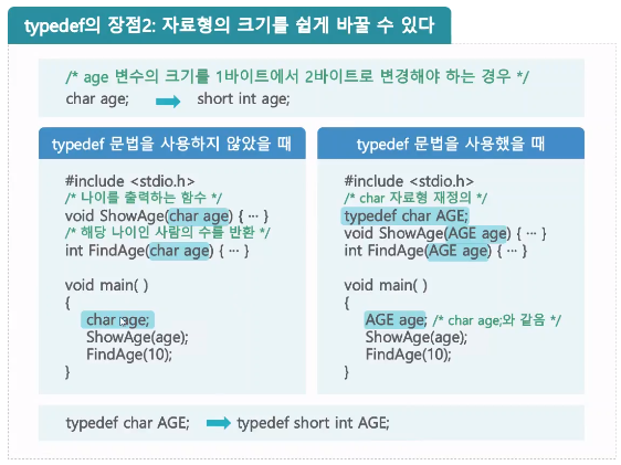 - 기존 자료형 이름의 길이가 긴 경우 자료형을 재정의하여 사용하는 문법