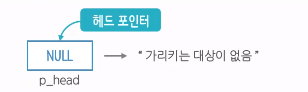 // 첫 노드를 가리킬 헤드 포인터를 선언하고 NULL을 초기값으로 대입