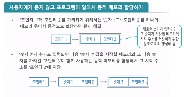 => 사용자가 입력한 모든 숫자를 저장하려면, 사용자가 숫자를 입력할 때마다 그 숫자를 저장하는 동적 메모리를 하나씩 늘려가는 방법을 사용한다. 근데 여기서 문제점 !!!!!!💥💥💥💥💥💥