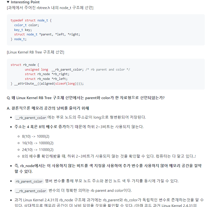 => 사실 공부하면서 RB TREE가 정확히 어디에 쓰이는지에 대해 찾아보았는데 내가 원하는 명확하게 쓰이는 곳(?)에 대해 찾기 힘들었다. 그래서 내가 이런 식으로 궁금했던 것을 찾아보고 알아보는게 맞는가 싶었는데 틀린 방향은 아니였다는 것을 깨달았다. RB tree의 회전, 삽입, 삭제에 관한 디테일한 내용들은 많은 분들이 정리해주셨는데 왜, 어디서에 관한 얘기는 없는 것 같아서 정리해보았다. 구현한 rbtree-lab 레포 리드미에 정리해놓았다. ! 리눅스 커널의 rbtree는 YJ 언니를 통해 알게 되었는데 완전 신기하고 띠용했던 경험 !