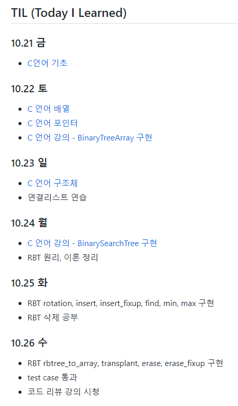 C언어 극혐자였던 나는 내 인생에 C언어는 다시 안 볼 줄 알았다. C언어를 안 할려고 자바로, 파이썬으로 옮겨다녔는데 결국엔 C로 돌아왔다. 이번주차는 C언어의 이해 목적이 아닌 C언어를 이용해 RB-TREE를 "구현"해야하는 것이었다. 즉, C언어의 이해는 필수였다. 포인터만 나오면 머리가 어지러웠던 나는 결국에 피할 수 없는 상대를 맞이해버린 것이다.