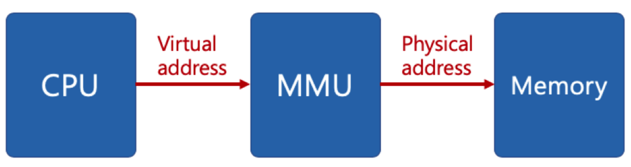 - CPU는 가상 메모리 주소를 다루고, 실제 해당 주소 접근시 MMU 하드웨어 장치를 통해 물리 메모리에 접근한다.