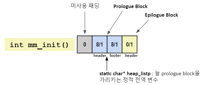 PUT(HDRP(NEXT_BLKP(bp)), PACK(0, 1)); // new epliogue header: 항상 size 0, alloc 1