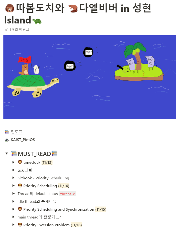 Pintos Project 1이 끝났다. 정말 책에서만 보던 커널을 내가 짜게 될 줄 몰랐다. 공부로 도망치지 말라는 코치님의 말씀은 어느정도 이해는 갔지만 정말 일요일부터 몸소 느꼈다. 시간이 없다는 것을. 블로그에 정답이 나와있는 코드를 보지 않고 짜고자 했고 우리조는 최소한의 레퍼런스를 봤었다. 사실 처음 3일 정도는 감이 안 잡혔기 때문에 정말 극도의 스트레스를 받았다.. 일단 첫번째로 함수를 타고 타고 타고 타고 타고가야하는 과정 자체가 처음에는 "정말" 쉽지 않았었다. 또한, 큰 그림을 보고 싶었는데 큰 그림이 안 보였다. 사실 이렇게 방대한 양의 코드를 보고 구조를 파악하는게 핀토스의 핵심 포인트라고도 생각한다. 이론만 봐서는 절대 모를 핀토스 과제를 수행하기 위해 우리조는 머리는 3개, 코드는 1개인 트리플 코딩을 진행했고, 결론적으로는 나쁘지 않았다. 코드를 계속 보면서 어느 정도 그림이 그려졌긴했다. 과정 속에서 디버깅의 어려움을 정말 정말 정말 느꼈고, list_remove의 반환값을 받지 않아 힘든 고생을 했음에도 같은 실수를 반복했다거나, 함수 하나의 오류로 모든 test case가 FAIL이 뜨는 경험도 했다. 정확히 발표날인 목요일 새벽 4시 반에 ALL PASS가 뜬 후, 발표를 하고자 정리했던 부분에서 우리는 코드의 구조를 이해하기 위해 "추상화"의 과정을 통해 이해했음을 깨달았다. 모르면 DL 오빠의 주도하에 그림을 그려가면서 이해하고 넘어갔다.(짱) 운영체제는 추상화의 꽃이니라 ... 끝으로 내용이 방대한 만큼 순간 순간에 정리해야하는 습관을 들여야할 것 같다. 잘 풀리면 재밌고, 안 풀리면 정말 말도 안 되게..... 힘든 핀토스 녀석 ... Project 2도 화이팅이다.