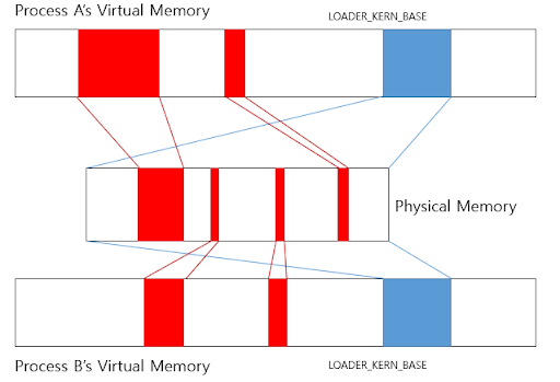 다시 말해, 가상 주소인 KERN_BASE는 물리 주소 0에 매핑되고, 가상주소 KERN_BASE + 0x1234는 물리 주소 0x1234에 대응된다.