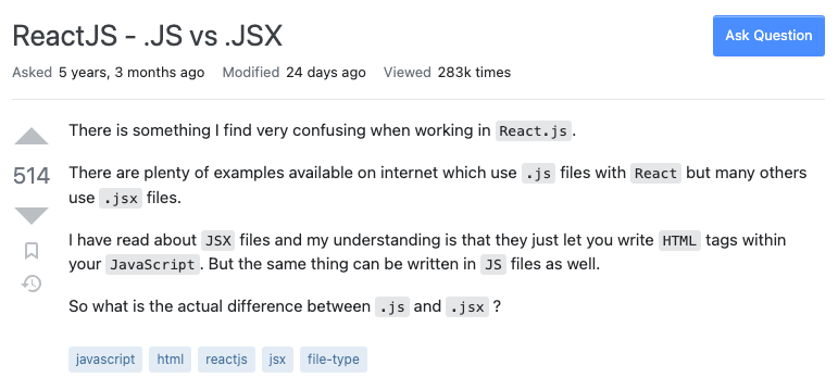 https://stackoverflow.com/questions/46169472/reactjs-js-vs-jsx/46169521#46169521