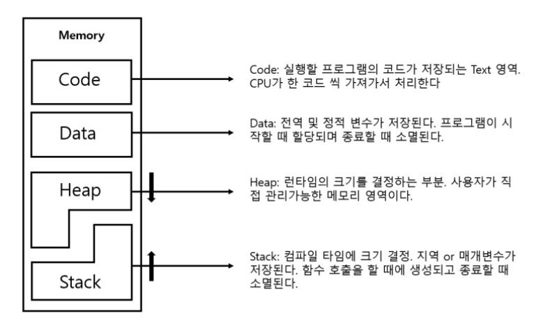프로그램이 운영체제로부터 할당받는 대표적인 메모리 공간은 다음과 같다.