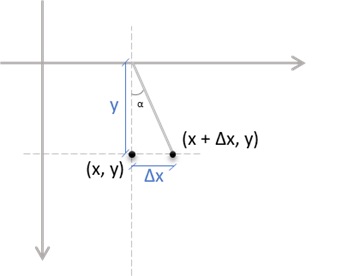 First, let's understand how shear occurs. By perfoming a shear along the X axis (skewX) form an alpha angle at the point (x, y), our transformed point will be offset by a delta X value:
