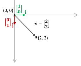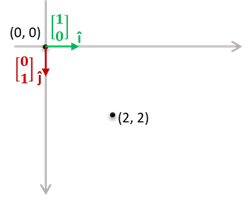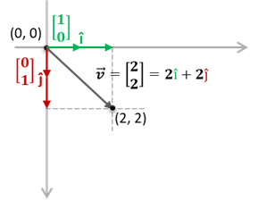 즉, 벡터 [2, 2]는 두 개의 î 벡터와 두 개의 ĵ 벡터의 선형 조합입니다. (why? î 벡터와 ĵ 벡터는 길이가 1인 단위 벡터이기에!_