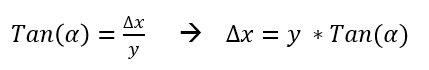 We know the tangent of alpha (= skewX) and the value of y, we can write delta X in terms of both: