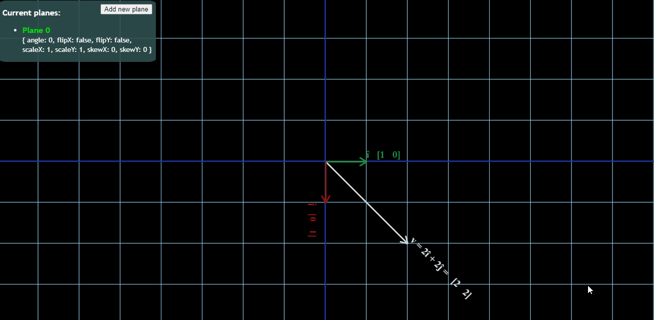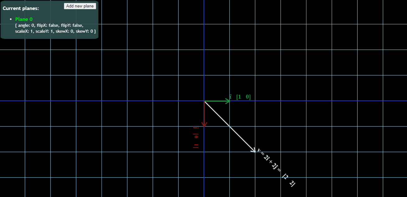 이 평면의 모든 벡터는 î와 ĵ(평면의 기본)의 선형 조합으로 나타낼 수 있습니다.