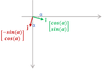As expected, the transformation due to a rotation is a function of the angle of the rotation. The calculation of vectors values is found through trigonometry: