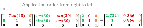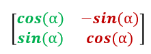 rotation: 회전 조정 변형에 사용되는 행렬은 회전 각도(a)에 따른 삼각법 계산으로 이루어진다.