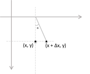먼저, shear(전단)이 어떻게 발생하는지 이해 해보겠습니다. 점 (x, y)에서 알파 각도로 X축을 따라 전단(skewX)을 수행하면 변형된 점이 델타 X값으로 오프셋 됩니다: