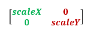 scaling: 크기 조정 변형에 사용되는 행렬은 다음과 같다. (scaleX, scaleY는 각각 x축과 y축의 크기 조정 비율을 나타낸다.)