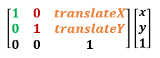 translate: 이동 변형에 사용되는 매트릭스는 다음과 같다. (translateX와 translateY는 이동할 위치를 나타낸다.)