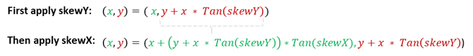 (x, y) = (x + y * Tan(skewX), y)