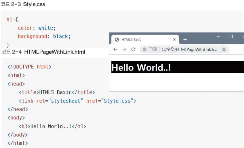- 스타일시트를 별도로 생성하고 link 태그의 href 속성을 사용해 불러옴