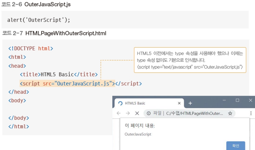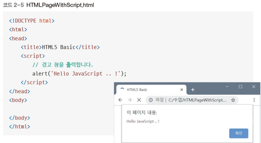 - <script> 태그를 사용해 HTML 페이지 내부에 코드 작성