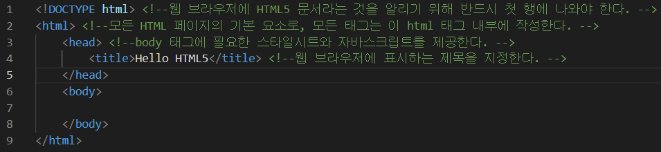<!-- --> 내에 내용을 작성하며 여러 줄로 작성할 수도 있다.