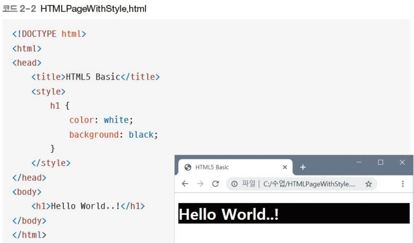 - HTML 페이지 내부에서 style 태그를 사용해 스타일시트를 직접 입력