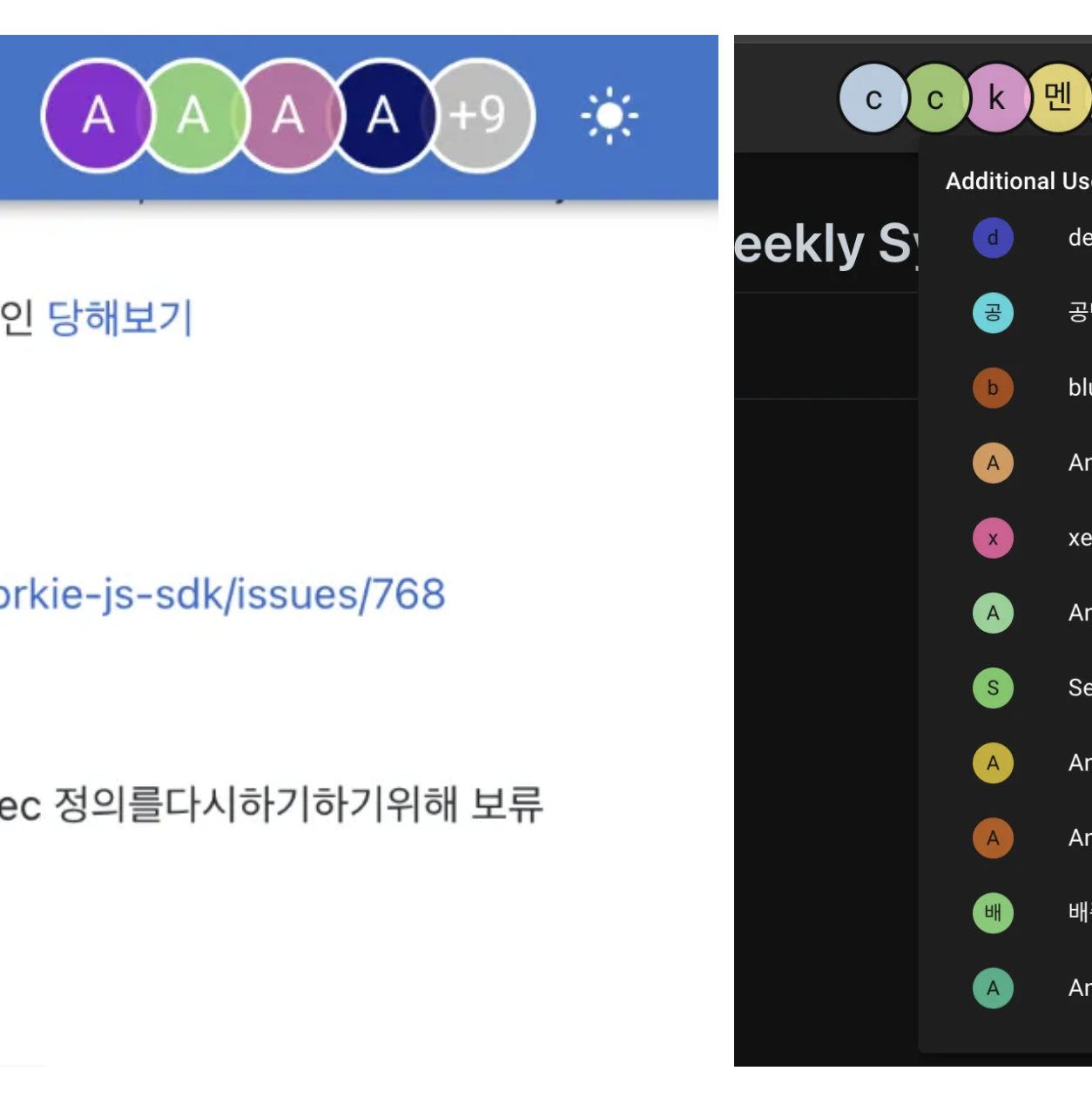 Codepair에 사용자가 로그인했음에도 불구하고 공유 문서에서 익명(Anonymous)으로 잘못 식별되는 문제가 있었고, 매주 진행하는 Weekly Sync에서 항상 어떤 참여자가 공유된 문서를 보고 있는지를 확인할 수 없었다.
