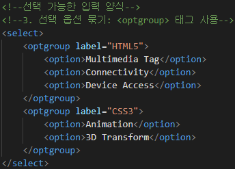 3. 선택 옵션 묶기: <optgroup> 태그 사용