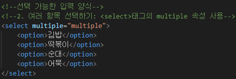 2. 여러 항목 선택하기: <select>태그의 multiple 속성 사용