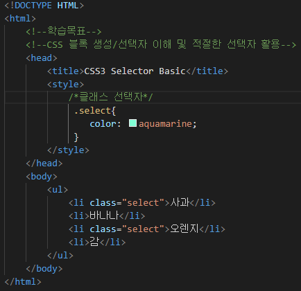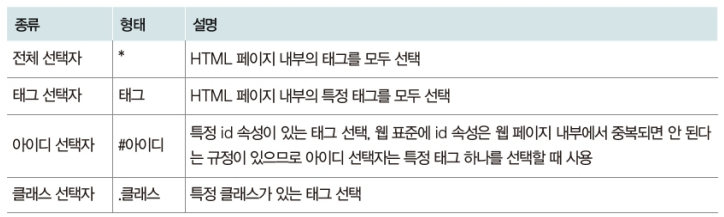 - 선택자: CSS3에서 특정 HTML 태그를 선택할 때 사용