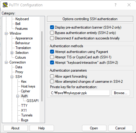 이후, putty를 통해 EC2 서버에 접속할 수 있다.