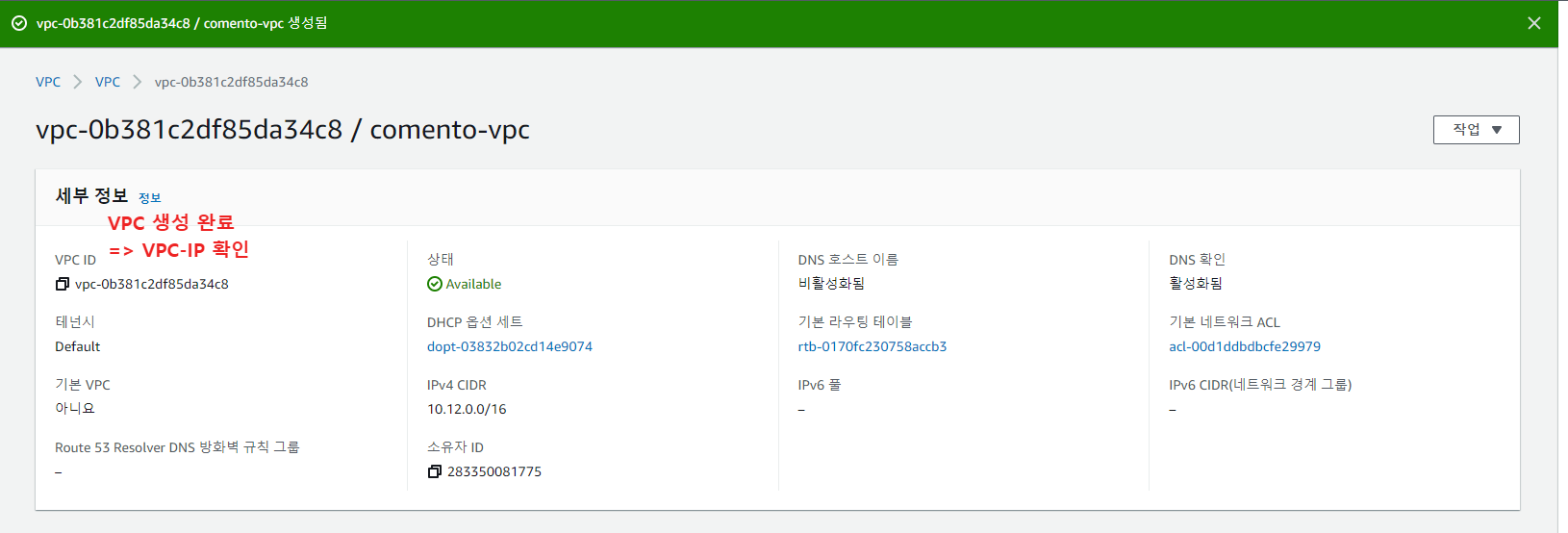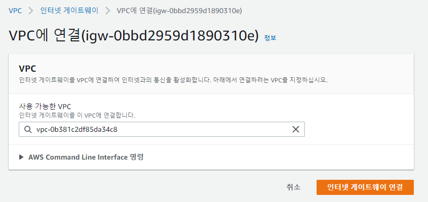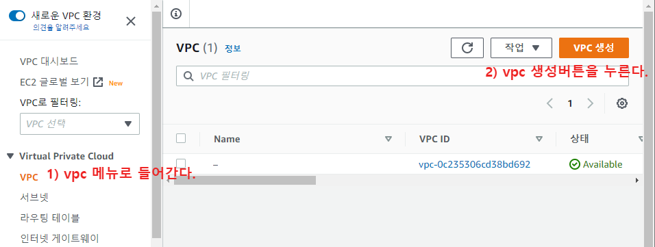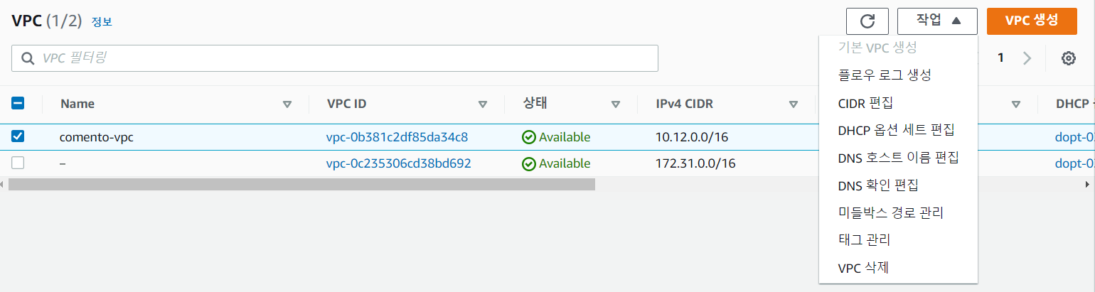 혹시 VPC를 여러 번 만들었을 경우, VPC메뉴에 들어가서 사용해야할 VPC 아이디를 확인해야한다.