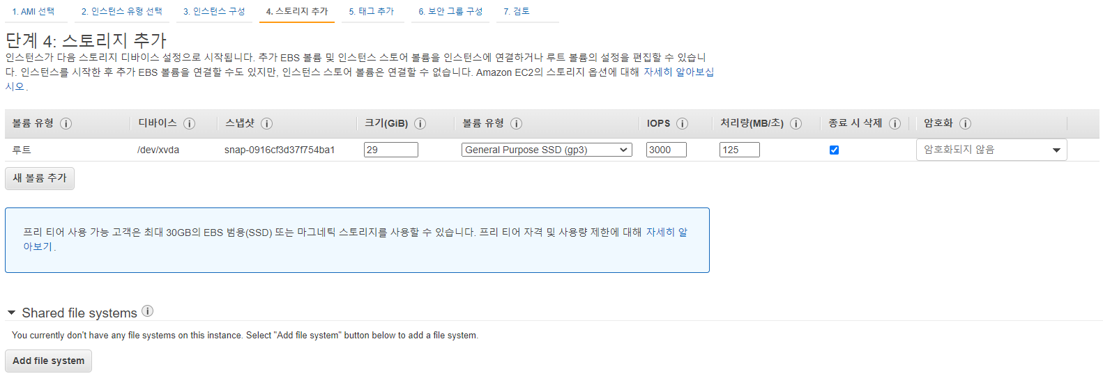 EBS를 사전에 선택했다. 다음과 같은 옵션이 있다.