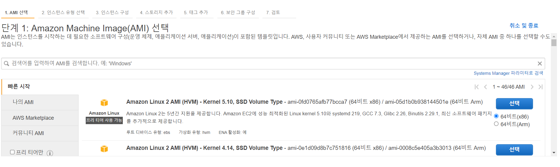 Linux2 AMI가 가장 일반적이라 이걸 사용하도록 한다.