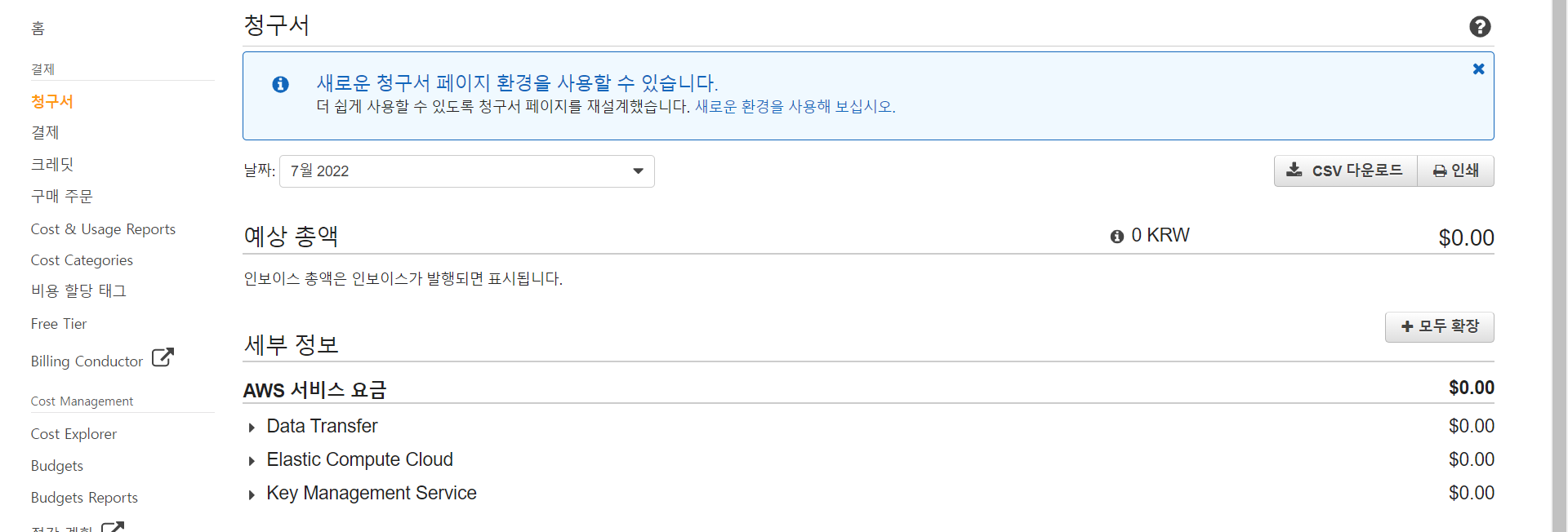 프리티어 표시가 있더라도 AWS계정을 만든 지 1년이 지나면 비용이 부과되지 유의해야한다.!!
