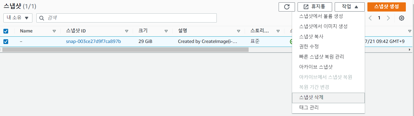 EBS 스냅샷은 '스냅샷 삭제=삭제'