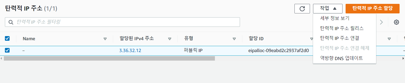 탄력적 IP 주소 릴리스를 눌러주면 된다.